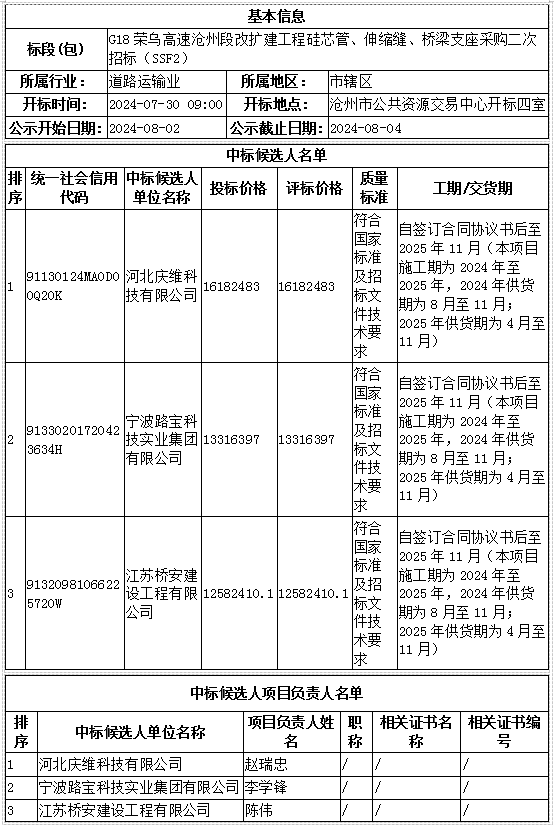 G18榮烏高速滄州段改擴(kuò)建工程硅芯管、伸縮縫、橋梁支座采購二次招標(biāo)(SSF2)